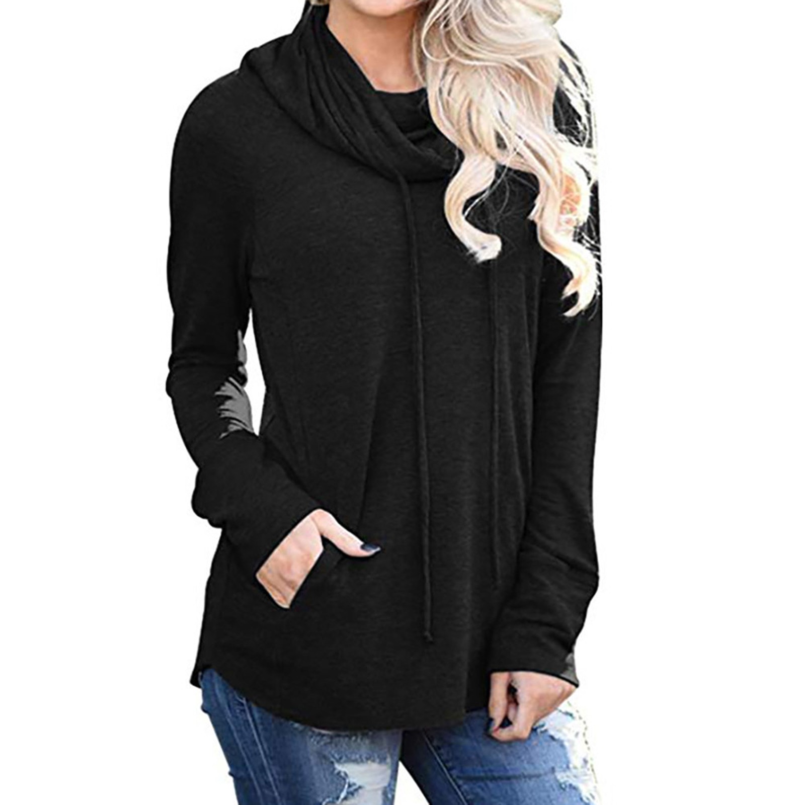 Junbyone Womens Long Sleeve Pocket Solid Color Cowl Neck Casual Sweatshirt Tops In Leisure Places Walmart Com
